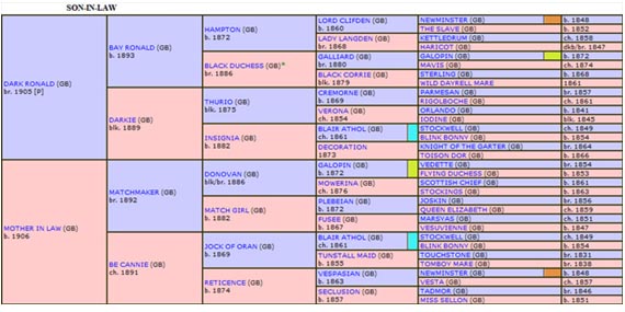Como Reprodutor, por transmitir sua Stamina para seus descendentes, foi chamado de “Rei dos Stayers”, numa época em que os “stayers” eram valorizados e procurados, pois o Calendário Clássico europeu privilegiava as corridas em longas distâncias SON–IN–LAW era filho do fabuloso DARK RONALD, o mais consistente pilar sobre o qual foi erigida a moderna Criação alemã, sendo filho de um dos mais consistentes PSI da moderna história do Turfe mundial, BAY RONALD.