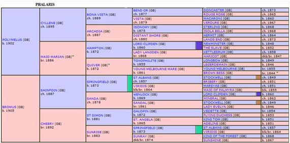 É fato que os Alinhamentos Paternos que perpetuaram esta prodigiosa Linhagem, em sua maioria quase absoluta, resultaram do “Nick” de PHALARIS com Matrizes filhas de CHAUCER (filho de St. SIMON), num dos mais célebres, senão o mais célebre “Nick” ocorrido no século 20, evidenciando a grande afinidade entre estas duas Linhagens de Referência.