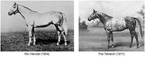 Voltemos ao passado, a partir de ROI HERODE (1904), filho do famoso e importante tordilho, LE SAMARITAIN (1895), pelo tordilho LE SANCY (1884), por sua vez, filho do alazão ATLANTIC (1871) com a tordilha GEM OF GEMS (1873), filha do tordilho STRATHCONAN (1863), e assim, sucessivamente, o Fenótipo tordilho foi se alternando pelo Segmento Paterno e Materno, até chegarmos à tordilha BAB (Grã Bretanha – 1787), cujos Pais, BORDEAUX (1774) e SPERANZA (1778), eram tordilhos, filhos, respectivamente, de HEROD (Castanho – 1758) e CYGNET MARE (Tordilha – 1761), e de ECLIPSE (Alazão – 1764) e VIRAGO (Tordilha – 1764).