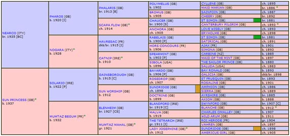 II.2 – ROYAL CHARGER – GB – 1942 – M.C. – NEARCO X SUN PRINCESS por SOLARIO X MUMTAZ BEGUM por BLENHEIM X MUMTAZ MAHAL por THE TETRARCH.