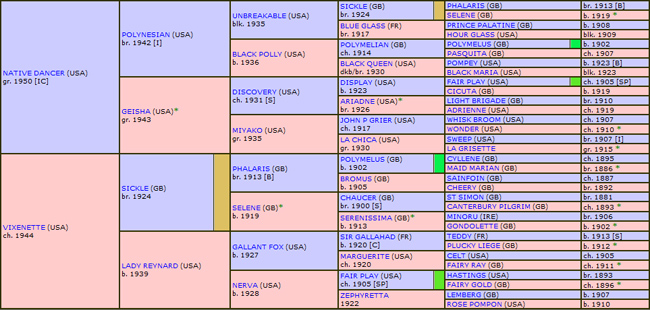 III – BLOODLINES DA LINHAGEM DE REFERÊNCIA DE NATIVE DANCER