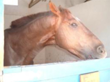 Este vício relativamente comum que ocorre em animais tanto em treinamento como nos haras significa o ato de “ENGOLIR” o ar. O animal pode apoiar os dentes, ou não, em um objeto fixo realizando em seguida um movimento de arqueamento do pescoço (foto abaixo). Este movimento faz com que o ar entre no estômago e lá permaneça, pois lembrem o cavalo não consegue fazer a eructação, ou seja, não consegue arrotar.