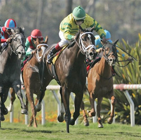 Nashoba (Caerleon), foi a primeira a cruzar o disco, 3/4 de corpo à frente de BALANCE, anotando