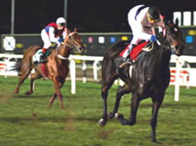 Tras e, sem luta, dominou a ponteira no meio da reta e fugiu para o disco, para vencer por dois corpos e meio.