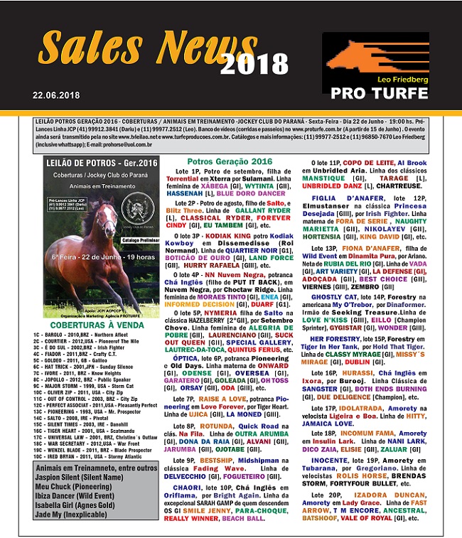 Leilão Presencial de Potros – Derby Paranaense – PRO TURFE