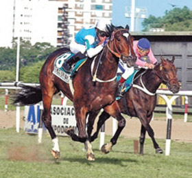 Definitivamente, Emotion Parade é a melhor potranca do turfe argentino e ontem, participando do Gran Premio Enrique Acebal, do Grupo I, em 2.000 metros, grama, destaque da programação do Hipódromo de San Isidro, deu mais um show. Ganhadora da Polla de Potrancas e do Gran Premio Selección, em Palermo, a filha de Parade Marshal e Cronaxia mostrou o mesmo potencial na pista de grama e deixou Gualeta a cinco corpos, sem nunca ter sido exigida pelo peruano Edwin Talaverano. Esta foi a terceira vitória de Grupo I da potranca nascida e criada no Haras Firmamento e preparada pelo treinador Miguel A.Garcia. Para o percurso, Emotion Parade assinalou a excelente marca de 118s75. Miss Chatty, Arriba Baby e Waimea Bay completaram o marcador. DE NOVO, SÓ COLOCAÇÕES – O brasileiro Jorge Ricardo participou de oito provas na corrida de ontem, em San Isidro, e não venceu. Conseguiu um terceiro, dois quartos e terminou cinco vezes fora do marcador. GRUPO II É ATRAÇÃO EM PALERMO – Um excelente programa de 15 páreos será realizado na tarde/noite de hoje no Hipódromo Argentino de Palermo, com destaque para o Clásico Carlos Tomkinson, do Grupo II, em 1.600 metros, para éguas de 3 anos e mais idade. O campo de oito competidoras tem como favorita Terms Parade, do Haras Firmamento, montaria de Damián Ramella. Mas, a filha de Parade Marshal terá sérias adversárias em Miss Atorranta (Noriega) e Stormy Mala (Valdivieso). Segundo o programa oficial, Jorge Ricardo tem 11 montarias na reunião. INVASOR, ORGULHO ARGENTINO – Como não poderia deixar de acontecer, os principais diários argentinos destacam, em manchete, a vitória do craque argentino Invasor na Breeders’ Cup Classic, ontem, nos Estados Unidos. O La Nación chega a afirmar que "Seria algo asi como el Maradona de los hipódromos".
