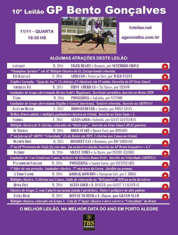 Porém, além do alazão de 500 Kg filho de Tiger Heart em mãe Setembro Chove, o Leilão do Bento apresenta diversos outros animais de alta qualidade, como se pode observar no anúncio.