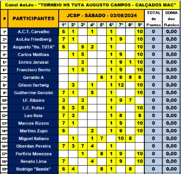 Dica de alguns dos melhores catedráticos para as corridas desse Sábado em Cidade Jardim.