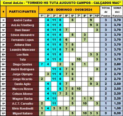 Torneio Hs Tuta Augusto Campos – Calçados MAC – Gávea 04/08 05/08/2024 - 08h13min