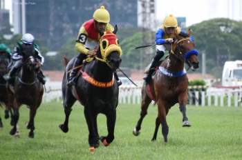 Zafar, um filho de Rally Cry e Off The Wall, por Pioneering, de criação do Haras Santarém, e propriedade do Stud Corazon de Leon, apresentado no último furo por Dilson Antunes, e conduzido com serenidade por Ruberlei Viana, não deu chance aos rivais e ganhou a puro galope a Prova Especial Raphael de Barros Filho, para potros de 2 anos, realizada hoje à tarde, em Cidade Jardim, no tempo de 56s8/10. Teimoso, sob direção de Wellington Ariel, formou a dupla, com os dois defensores do Haras Cifra, Pycon, e Paragon, a seguir, na terceira e quarta colocações, respectivamente.