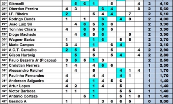 Leo Friedberg, chegou agarrado, também com a vista limpa pois acertou também os 5 palpites, mas perdeu pela soma dos rateios. E diga–se de passagem, a soma foi record. Augusto Tuta venceu com soma de rateios de 27,20 a 26,70 em cima de Léo Friedberg.