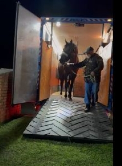 Chegou ontem em Bagé, mais precisamente às 19:30h quando desceu do caminhão de transporte, na Fazenda Mondesir, onde fará estação de monta, o Reprodutor Game Winner.