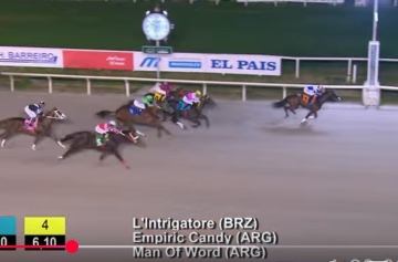 Pablo Rodrigues, jóquei de L’Intrigatore faz correr nos últimos 200 metros, livra meio corpo, toma a ponta e vai embora, e o argentino Empiric Candy que corria por fora de L’Intrigatore na curva, também vem na mesma tocada, mas não teve pernas para ganhar de L’Intrigatore. O outro argentino do páreo, Man of Word que também vinha junto com L’Intrigatore, só que por dentro, faz terceiro.