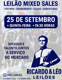 Com 19 lotes e 8 coberturas (Outstrip, Billion Dólar, Verrazano, Courtier (2), Taaref e Goldkovic), será amanhã o 1º Leilão Ricardinho e Léo. Ambos recordistas, Ricardinho por número de vitórias no mundo e Léo Friedberg, que foi campeão das estatísticas de proprietários de Cidade Jardim na década de 80, quando o Jockey Club de São Paulo fervilhava.
