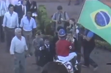 J. Ricardo com Much Better e a bandeira do Brasil após a vitória no Latinoamericano em La Plata