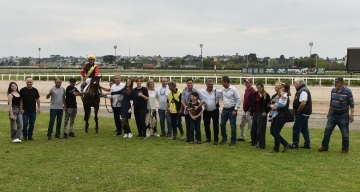 Para a foto da vitória, muitos amigos receberam a vencedora Shallo Now – Foto@felipeneves/@jockeyclubdoparana – JCPR