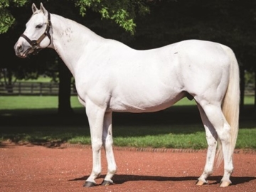 Tapit, o pai da craque Scylla, reprodutor tordilho da Gainesway, cujos filhos não param de ganhar clássicos.