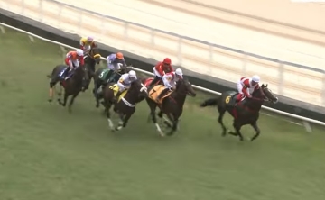 No final da curva, Tengo Tengo vem na frente, seguido por Bet You Can, Zhaar em terceiro e Taking Cash em quarto.