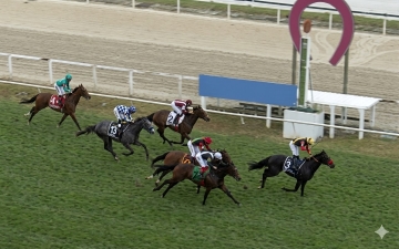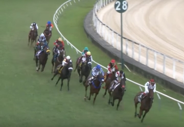 Na entrada da reta, Wendy Rose ainda mantém a ponta com 1 ½ corpo, Odalisca em segundo, Riva MC em terceiro, Veil lá por dentro é a quarta e Okeydoke com arminho é a quinta.