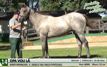 Opa Vou Lá, um filho de Wired Bryan em Daqui e dali, por Wild Event, nascida em 02/08/2024, alcançou o maior preço do Leilão.