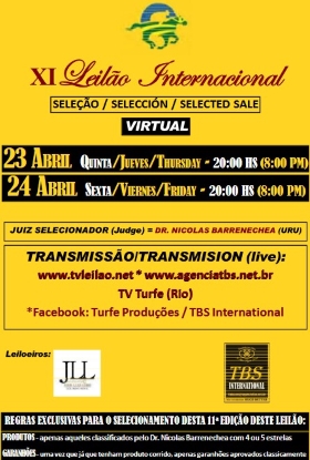 [13/04/2026 - 19h46min] - Leilão de Coberturas da Copa dos Criadores encerrará na 5ª feira, 16/04, às 19h