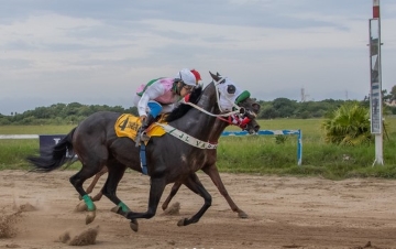 Ucho Fon, com a tocada de Vassourinha, por fora, vence o páreo principal da domingueira da Tablada