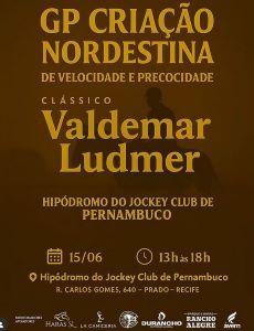 Neste domingo, 15 de junho, das 13h às 18h, o Hipódromo do Jockey Club de Pernambuco recebe o GP Criação Nordestina de Velocidade e Precocidade 2025 – Haras S. Ludmer, destinado a produtos de 2 anos, em regulamento próprio, e o Clássico Valdemar Ludmer.