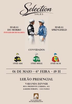 Com transmissão pela TV Turfe Rio, TV Jockey São Paulo e internet, a partir das 20 horas, acontecerá nesta 4ª feira, dia 15 de abril, o leilão de reprodução do HARAS SANTA MARIA DE ARARAS, que contará com animais dos HARAS OLD FRIENDS, RED RAFA, RIO DOIS IRMÃOS e LEGACY, criadores que estão entre os melhores do Brasil, com expressivos resultados no turfe nacional e no exterior