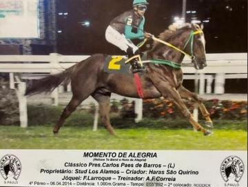 Momento de Alegria, de propriedade do Stud Los Alamos, de Ricardo Cury, em uma de suas vitórias